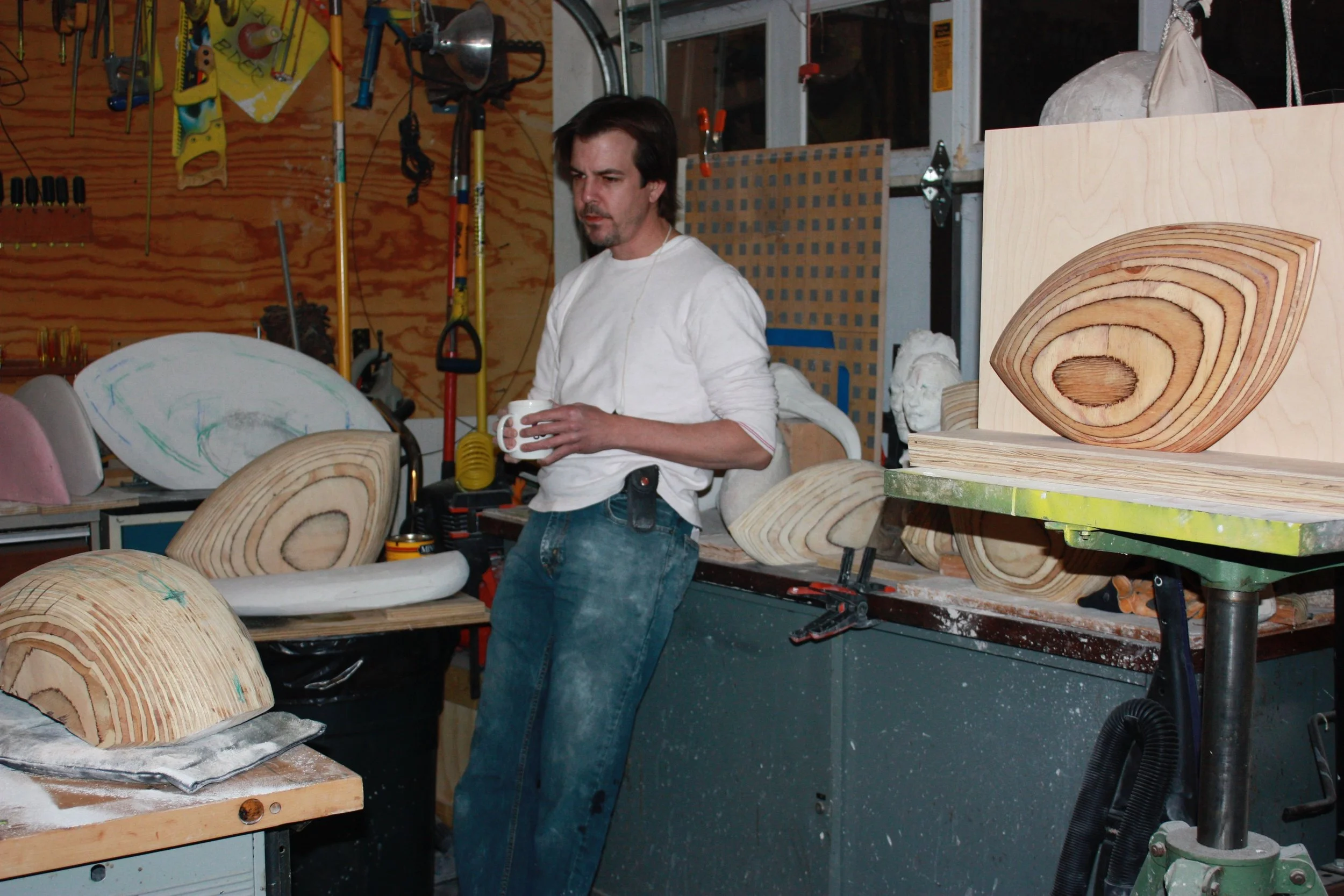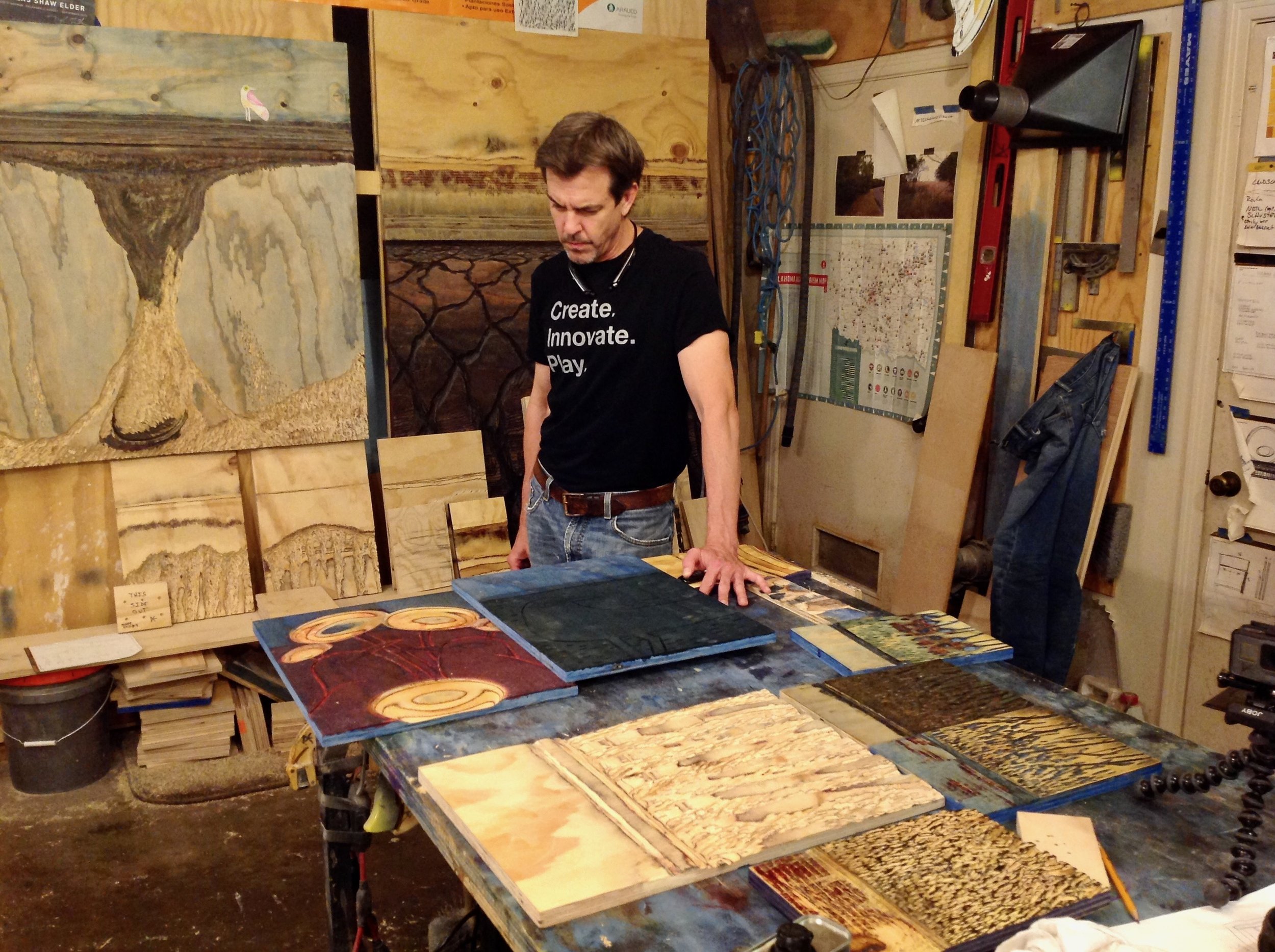 In recent years, the series has shifted toward exploring Oklahoma’s ecosystems and the region’s layered visual character. Many works investigate subterra, the hidden structures beneath the surface that support life above ground: roots, soil, water, and geological strata. Through carving, rubbing, and layering, the sculptures and drawings evoke landscapes shaped by time, pressure, and slow transformation.